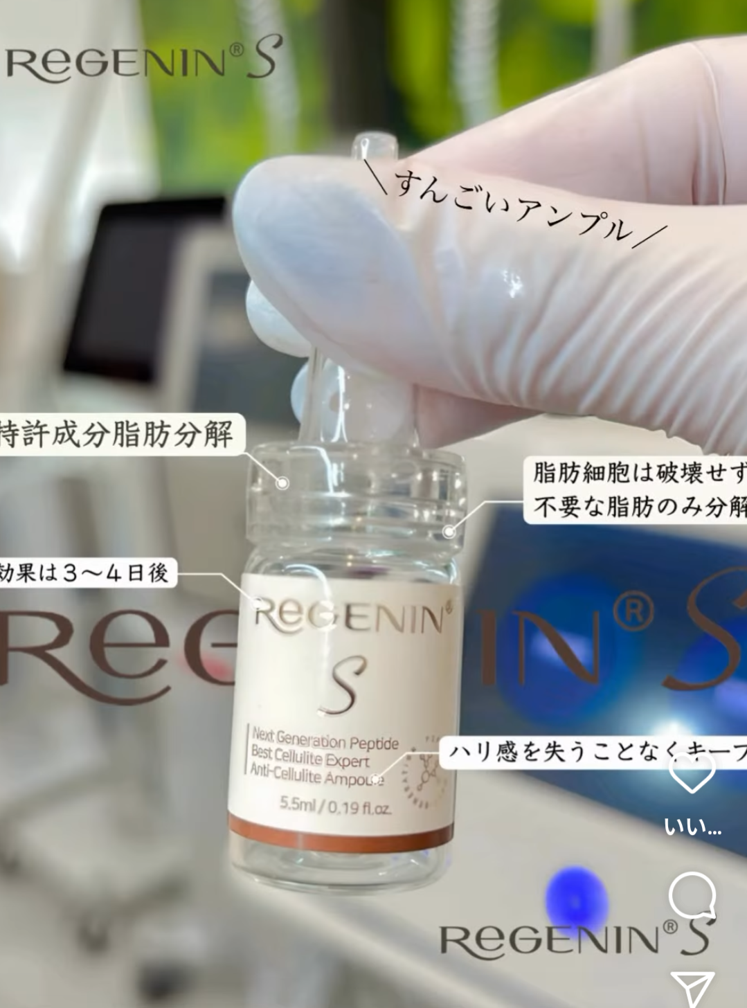 【ReGENIN S:リジェニンエス】脂肪減少と肌のハリ・弾力を同時に叶える最新世代の韓国から上陸した特許脂肪分解剤です☆韓国では美容医療(クリニック)の分野でも活用されており少量でも実感できる結果が注目を集めています(エビデンス有)美容クリニックだけでなくサロン導入も進み今もっとも注目されている最新脂肪分解剤です。従来の脂肪分解剤は脂肪だけでなく周囲の皮膚細胞も傷つけてしまい肌のハリが失われることがあります。【REGENIN S】は肌の弾力を守りながら、不要な脂肪やセルライトだけを効率的に減らす最新の脂肪溶解剤、肌再生と引き締め感を同時に叶える新処方設計を採用。「部分痩せ+美肌」の両立を叶える次世代脂肪溶解アンプルです。*———————————————————-*#艶髪 #髪質改善 #桜木町駅 #横浜駅#プライベートサロン#大人女性#完全マンツーマン#小規模#少人数#ヴィラロドラ#ヘッドスパ#インディバ#30代#40代#50代#Hairsalon#カット美容院#近くの美容院 エステ/インディバ/エイジングケア/アンチエイジング/小顔/たるみ/むくみ/リフトアップ/美肌/コルギ/フェイシャル/ファムケア/ボディ/痩身/ヘッドスパ/美髪/育毛促進/水素吸入/肩こり/自律神経/横浜/桜木町/アンダーリップトリートメント/フェムケア/おまたオイル30代/40代/50代/艶髪/大人女性/ショートカット/ボブ/ミディアム/セミロング/レイヤーカット/ハイトーン/本格髪質改善/桜木町駅/みなとみらい/少人数プライベートサロ/上質空間/こだわりのインテリア/完全マンツーマン/ヴィラロドラ/ヴィラロドラ認定サロン/ヴィラロドラオーガニックカラー/トステア/オリベ/ORIBE/ヘッドスパ/ヘッドマッサージ/インディバヘッドスパ/白髪染め/白髪ぼかし/脱白髪染め/アジュバン/オラプレックス/OLAPLEX/桜木町/馬車道/関内馬車道駅/関内駅/ヘナ/ノンジアミン/ゼロテク/ワイコピーリング/スノーピール/ゴッドクリーナー/ドライスパ/レモンボトル